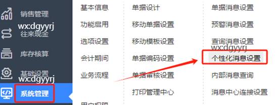 2、员工出生日期设置好后,接下来就需要设置消息发送了,鼠标点击系统管理-个性化消息设置,如图下: