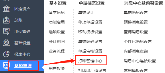1、鼠标放至系统管理,在跳出来的菜单中点击打印管理中心,