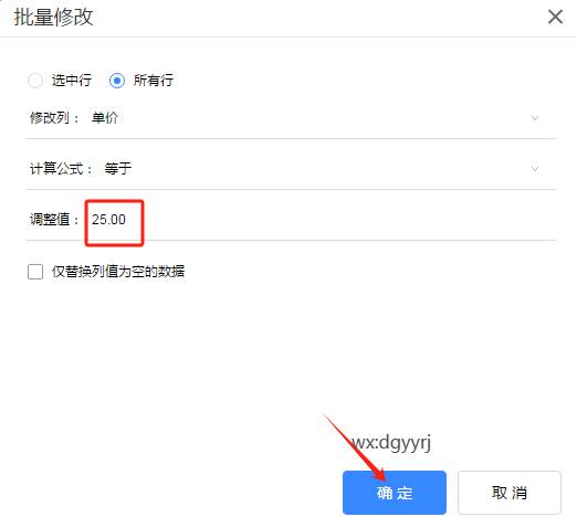 4、这些短袖价格如果都是25元,在调整值处录入25,再点击确定,如图下: