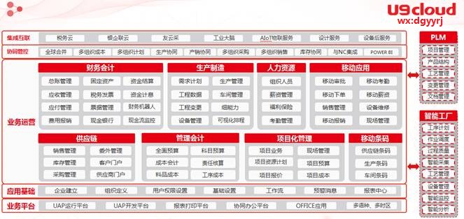 用友U9cloud是一款面向成长型企业的数智制造创新平台,作为用友精智工业互联网平台的重要组成部分,全面运用移动互联网、大数据、物联网、人工智能等最新技术,融合 PLM、智能工厂、AIoT、制造云、营销云、采购云、财务云、税务云、人力云等服务,构建互联互通的智能制造体系,真正帮助企业实现设计制造一体化、计划执行一体化、项目制造一体化、制造服务一体化、经营核算精细化,为成长型企业打造一站式数智化升级方案,重塑制造企业数智化核心竞争力。