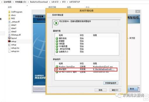 6.再次安装用友U872 发现 mdac组件 已经监测通过了,可以继续安装了。