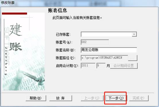 4、点击下一步,可以看到单位名称为“用友公司”,如图下操作:
