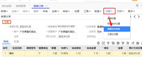 1、在菜单栏点击设置-调整控件宽度,如图下: